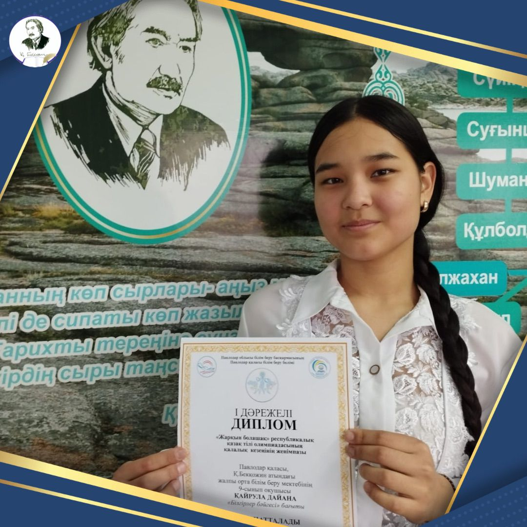 “Жарқын болашақ” республикалық қазақ тілі олимпиадасы Сәуір 12, 2024 Сәуір 12, 2024 “Білгірлер бәйгесі” бағыты бойынша 9 “А” сынып оқушысы Қайрулла Дайана 1 орынға ие болды.Жетекшілері:Байманова Р.Б,Мальшубаева Ш.С