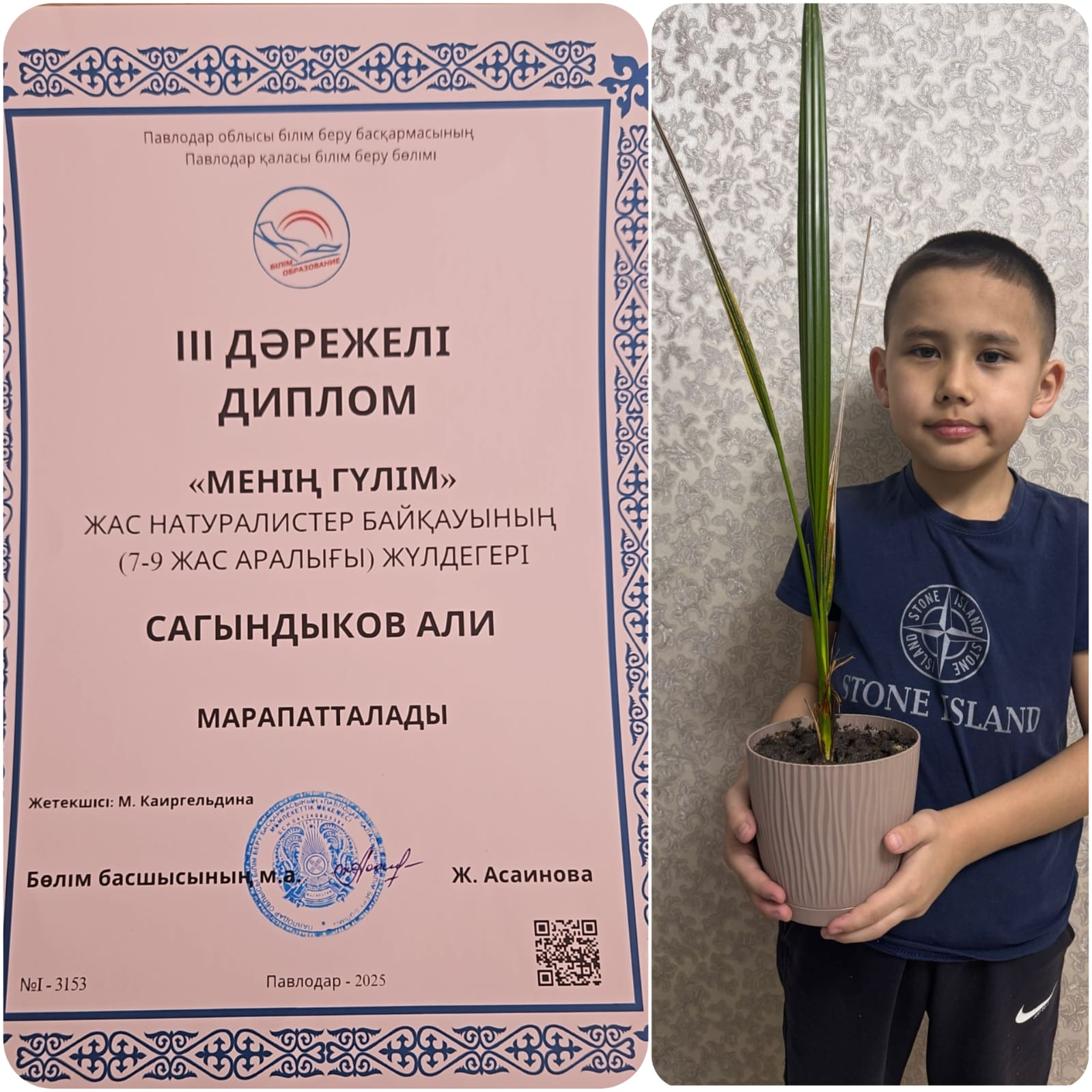“Менің гүлім” қалалық байқауы Сәуір 22, 2025 Сәуір 22, 2025 “Менің гүлім” қалалық байқауына мектебіміздің 3Ә сынып оқушысы Сагындыков Али қатысып, 3 орынға ие болды. Жетекшісі: Кайргельдина М К