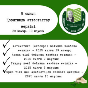 9 – сынып қорытынды аттестатау мерзімі (Емтихан – 2025)