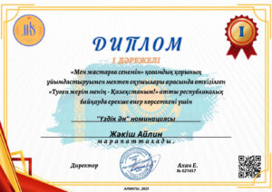 “Мен жастарға сенемін” қоғамдық қорының ұйымдастыруымен өткізілген “Туған жерім менің-Казакстаным” атты республикалық байқауы