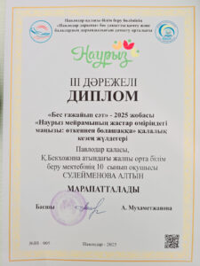 “Бес ғажайып сәт” – 2025 жобасы аясында “Наурыз мейрамның жастар өмірімдегі маңызы: өткеннен болашаққа” қалалық эссе байқауы