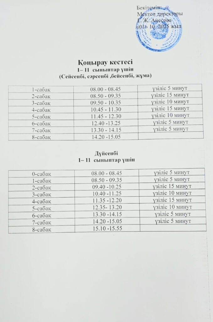 Қоңырау кестесі